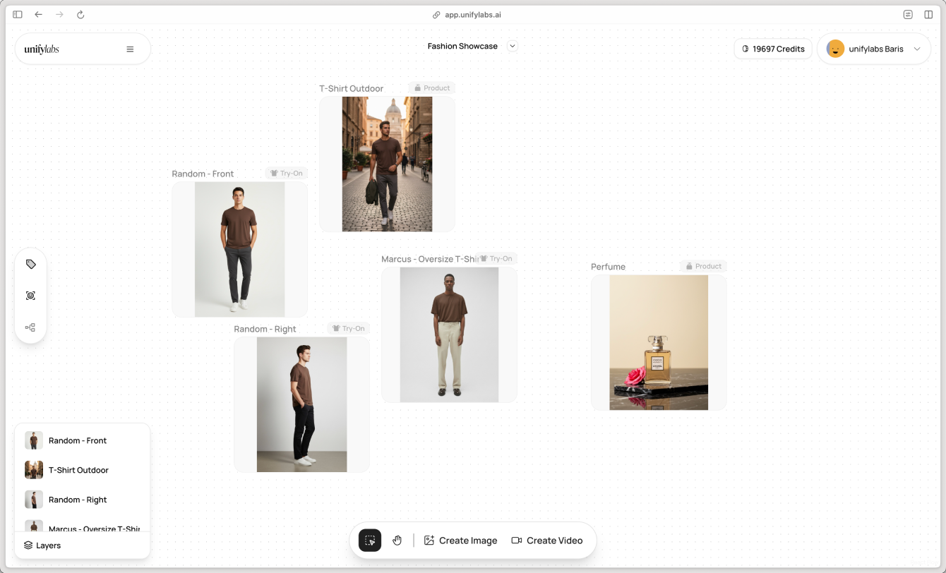 unify auto-selects scenes, angles, crops (and models if needed) from SKU/category context - so E-Com teams review and don’t research and prompt.